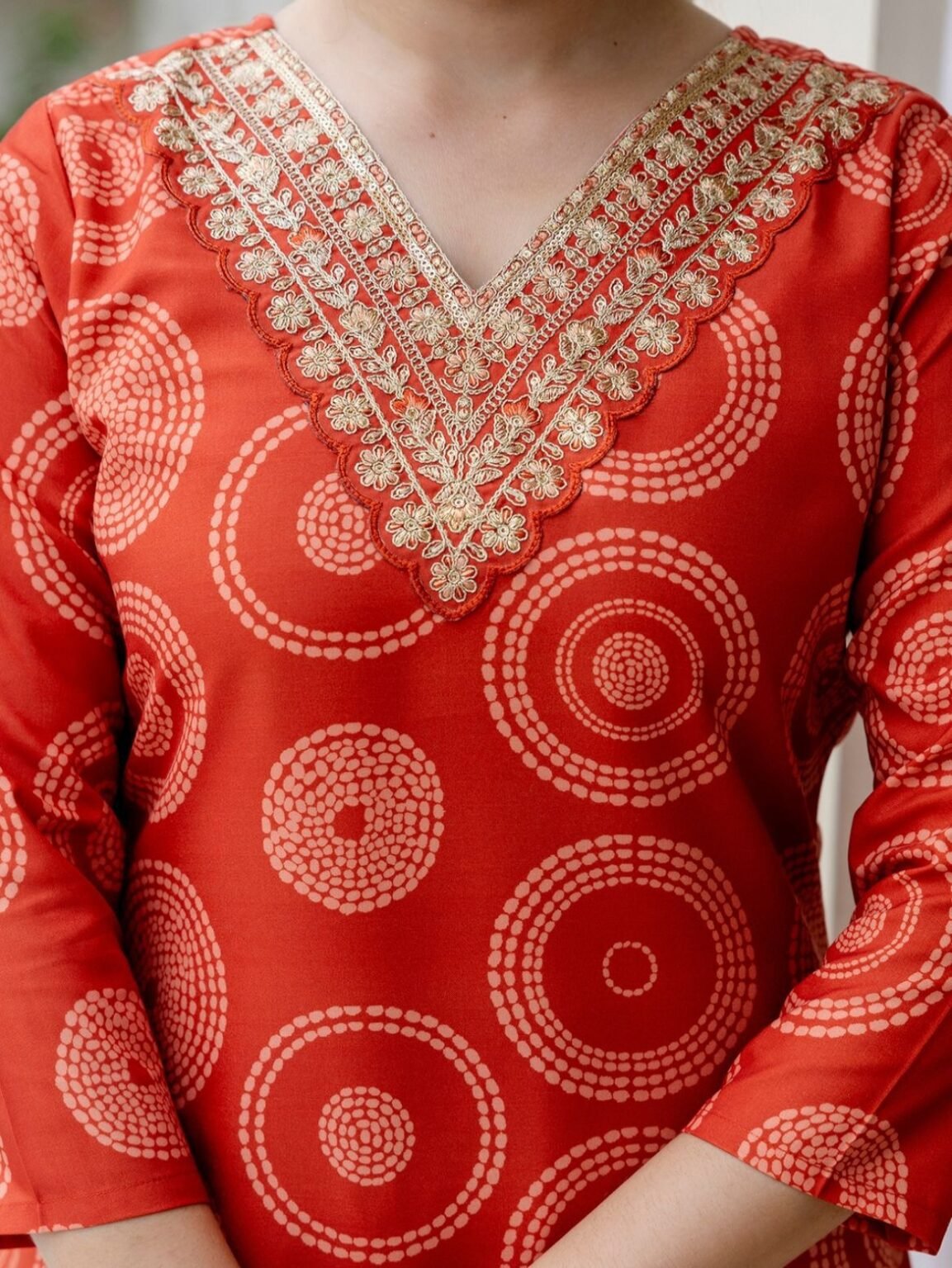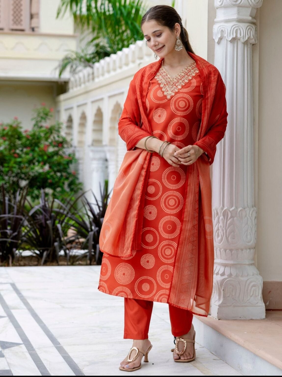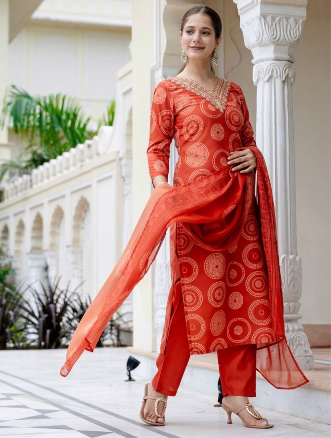 J.KANJI – Women Printed Thread Work Kurta with Trousers & With Dupatta